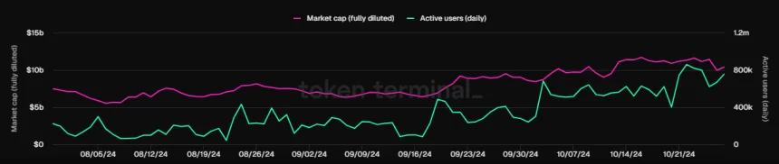 Aptoss daily active users and value locked have risen in the past few months. | Source: TokenTerminal