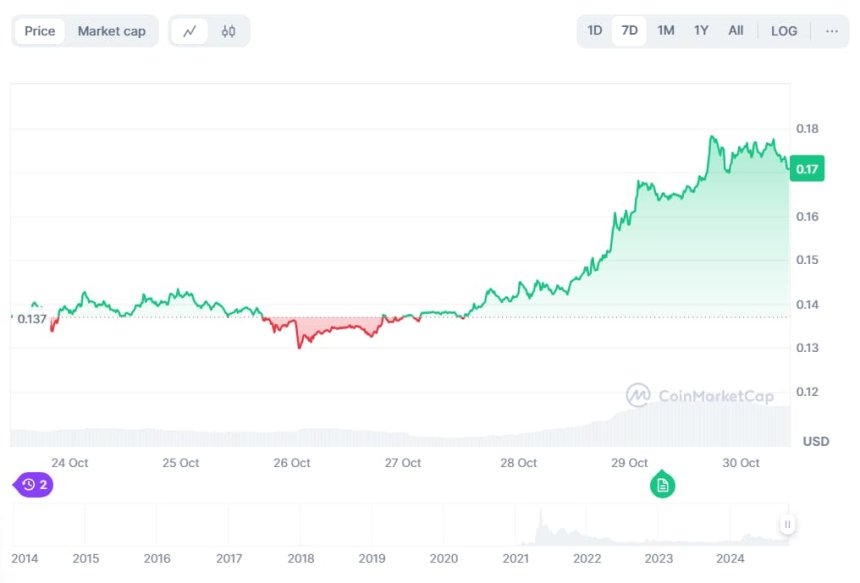 Elsewhere, Ali Martinez, who previously predicted the climb above $0.17, likewise noted on October 29 that Dogecoin is ‘on target’ while implying a further upside is ahead.