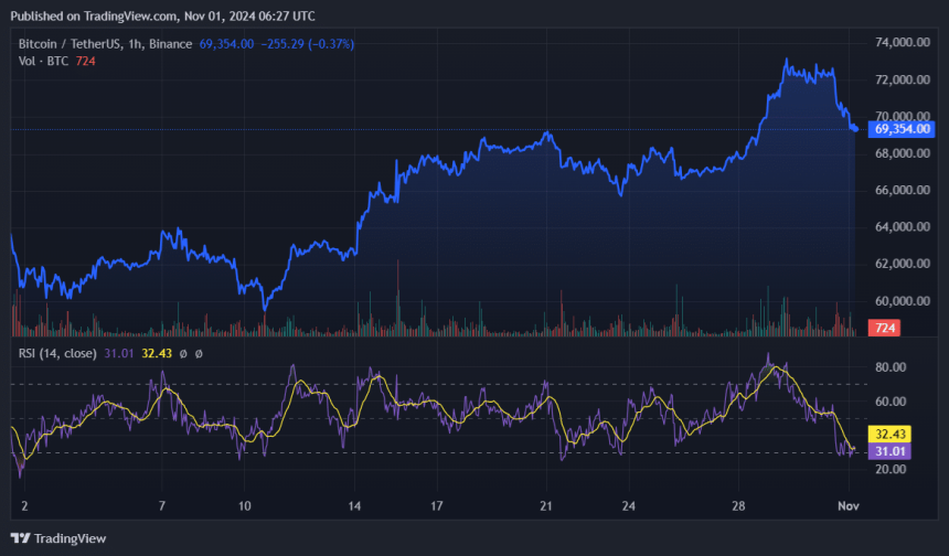 Bitcoin declined 4% in the past 24 hours and is trading at $69,350 at the time of writing. Its market cap plunged below the $1.4 trillion mark with a daily trading volume of $45 billion.