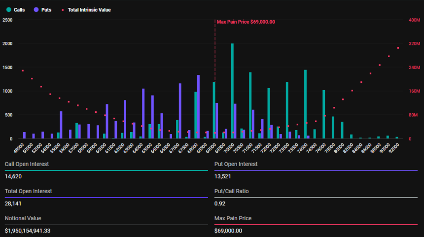 For Bitcoin, this implies a potential pullback toward its $69,000 max pain point, likely sparking short-term market volatility. While options expirations often cause temporary price swings, markets generally stabilize soon afterward.
