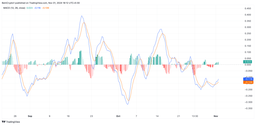 Moreover, TIA‘s moving average convergence/divergence (MACD), which measures an asset’s price trends and momentum and identifies its potential buy or sell signals, confirms this bullish outlook.