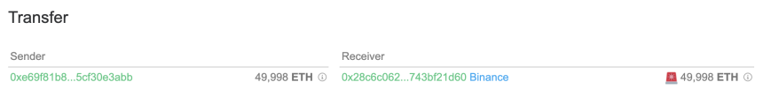 As it turns out, thanks to a report from Whale Alert, a massive 50,000 Ethereum (ETH) tokens have just landed on the world's largest cryptocurrency exchange, Binance. What is fascinating, though, is the fact that the sender is an unknown entity, according to the initial report.