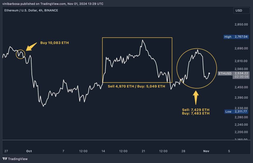 In particular, “he” previously amassed around $2.14 million in profits trading ETH against the dollar. Since October 14, the smart trader has gained over $334,000 in trading Ethereum twice, now adding to the spot-long position.