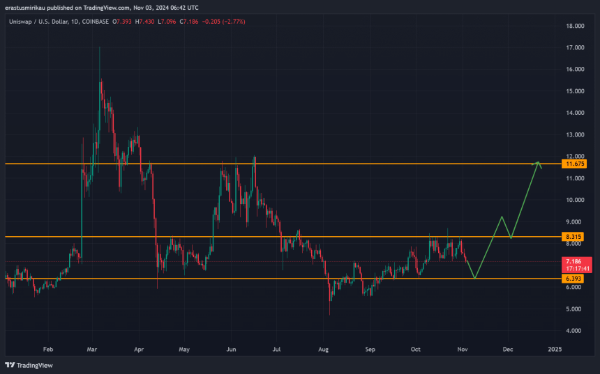 On the flip side, initial resistance at $8.31 represents a key hurdle that UNI must overcome to demonstrate potential bullish momentum. Should it manage to break this level, a more ambitious target could be set at $11.67, potentially heralding a stronger market recovery.