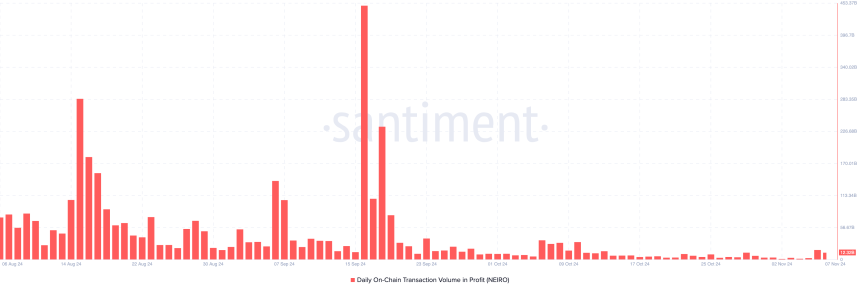 This volume is relatively low compared to previous times when NEIRO experienced notable jumps. For instance, on September 16, realized profits skyrocketed to 448.33 billion. In October, the profit volume was also higher than the current one on several occasions.