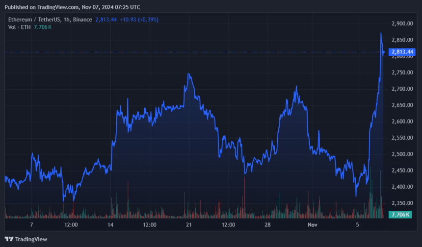 Ethereum (ETH) gained 8% in the past 24 hours and is trading around the $2,800 mark. The leading altcoin saw its market cap surpass $336 billion. Its daily trading volume increased by 27%, reaching $38 billion.