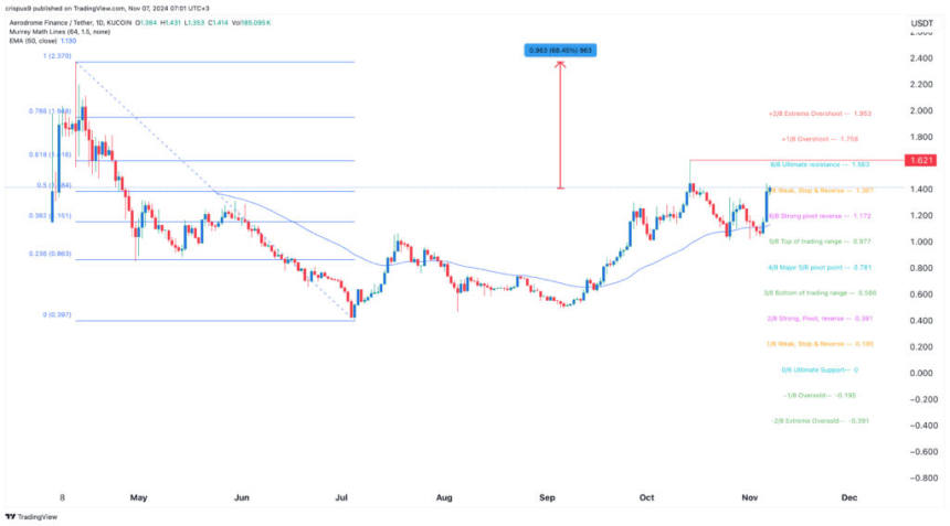 Aerodrome Finance (AERO) token price has continued its strong bull run this week as investors cheered the Donald Trump win and the rising crypto fear and greed index. The token soared to a high of $1.4 on Thursday morning, up by 250% from the year-to-date low, bringing its valuation to over $967 million.