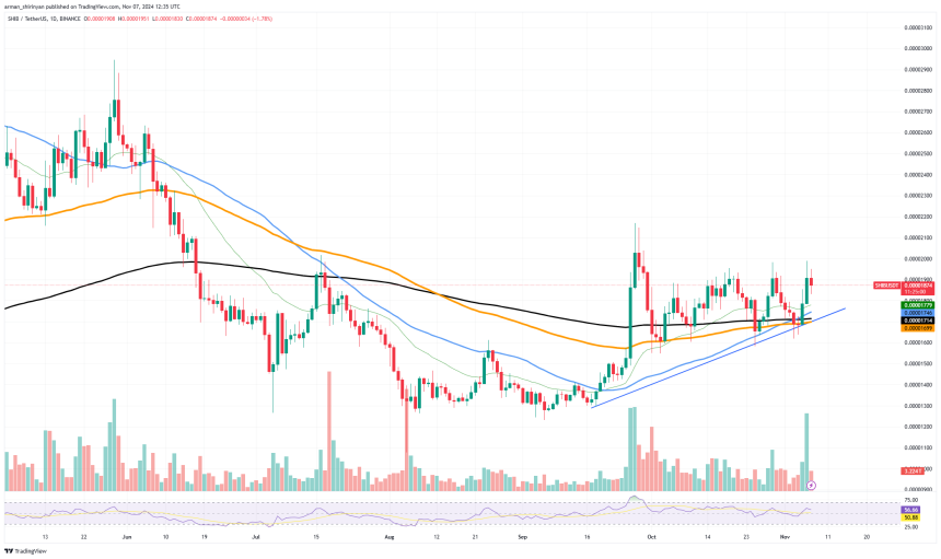 At $0.000019, a significant resistance level that has established itself as a formidable obstacle for the meme coin, Shiba Inu is presently having difficulty breaking through. SHIB's upward momentum has been capped by this resistance, which has caused it to oscillate within a small range. In addition, this price level completes an ascending triangle pattern, which is frequently linked to possible breakouts but can also become a barrier to additional gains if left intact.
