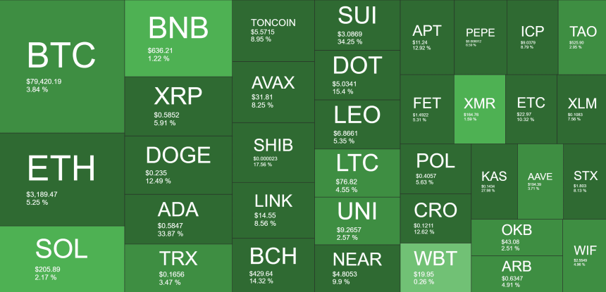 The US Feds rate cut on Thursday sent the asset flying once again, this time to roughly $77,000. Bitcoin calmed on Saturday but went back on the offensive earlier today. This time, it shot up above $79,000 and peaked just shy of $80,000. This came amid a week of massive inflows toward the spot BTC ETFs, as the products attracted roughly $2.3 billion in the last three trading days.