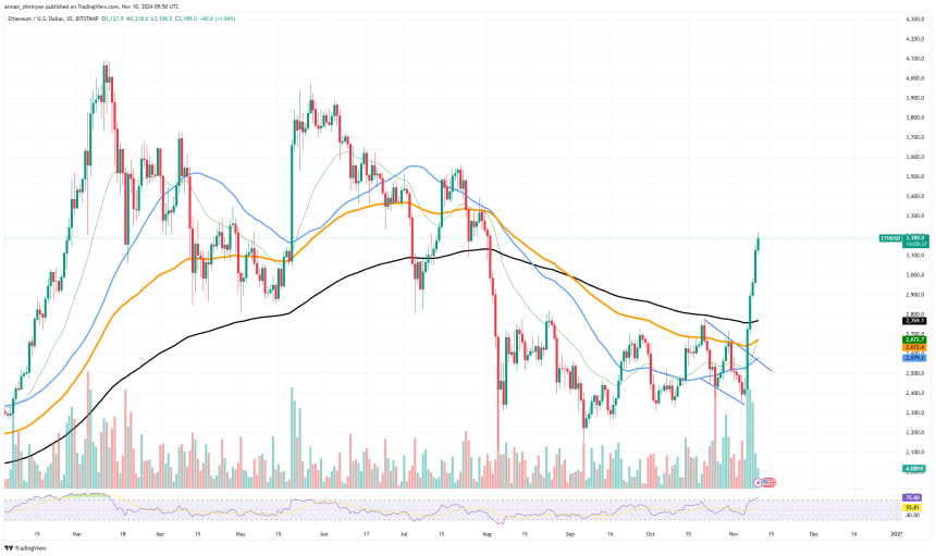 WikiBit 2024-11-10 20:04Ethereum, which is trading at about $3,120, is causing an euphoria in the cryptocurrency market righ