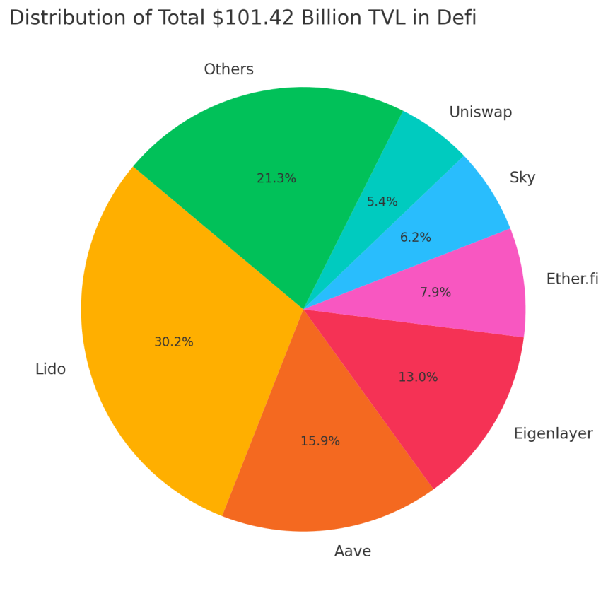 Lido operates as a liquid staking platform, while Aave brings a unique approach by allowing users to lend, borrow, and earn interest on crypto without middlemen. Rounding out the top three, Eigenlayer holds $13.443 billion, offering a restaking service tailored for the Ethereum ecosystem. Restaking enables users to leverage their staked assets across multiple protocols, potentially earning rewards without releasing the original funds.