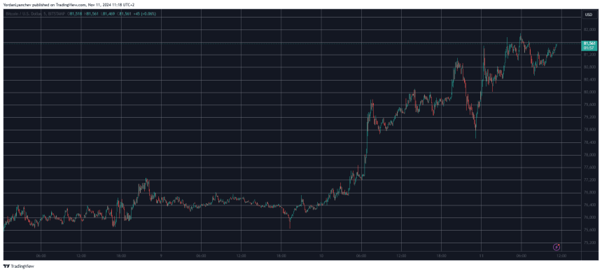 Bitcoins price rally continues strong as the asset flew past $80,000 and $81,000 earlier today to chart a fresh peak of almost $82,000.