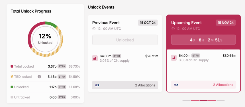 On November 15, the project will unlock 64 million STRK tokens, distributed to investors and early contributors.