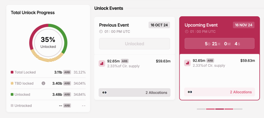 Next week, Arbitrum will unlock 92.65 million ARB, currently valued at approximately $59.63 million. The team, advisors, and investors will receive these tokens.