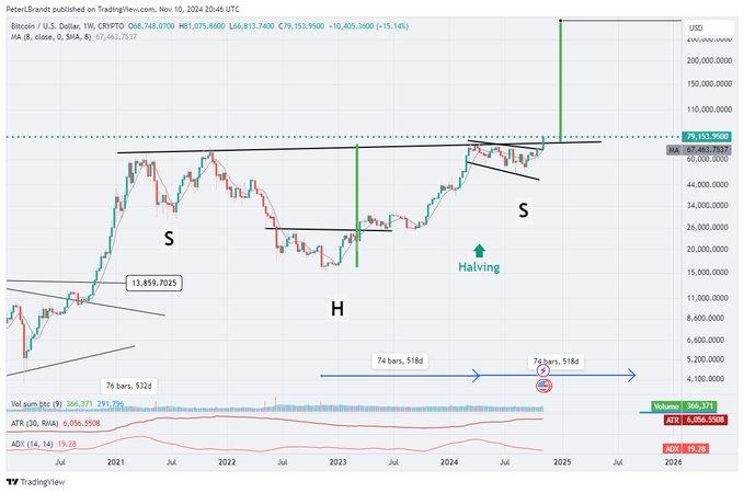 Bitcoin price has soared in the last seven consecutive days and is now sitting at a record high. This surge happened after Donald Trump won the American election last week, while Republicans were on track to win the House of Representatives.