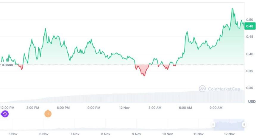 At the time of writing, the coins current price has now reached $0.4835, marking a substantial increase in a single day.