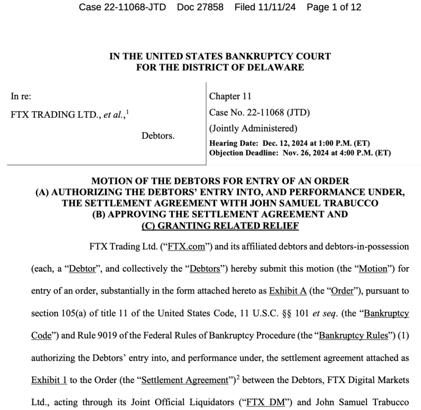 FTX settlement motion. Source: Court Listener