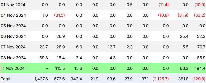 Spot Ether ETF flows since Nov. 1. Note BlackRock‘s ETHA has not been updated in Farside Investors’ flow table. Source: Farside Investors