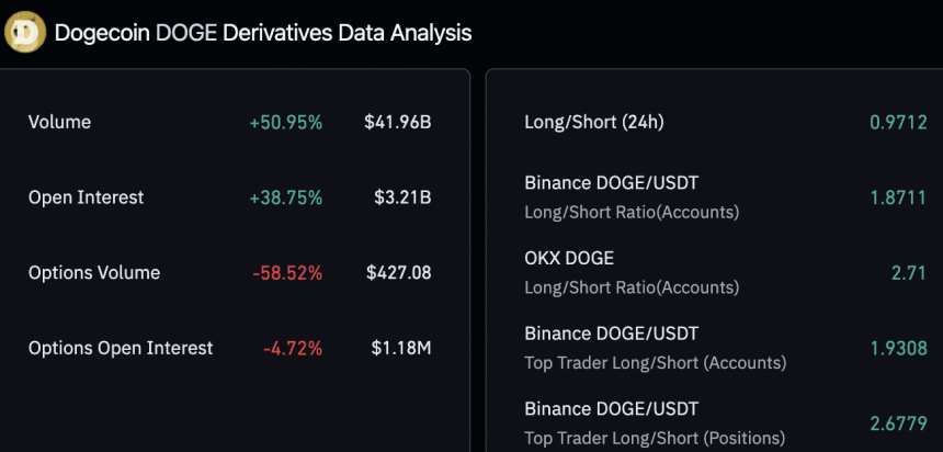 Dogecoin derivatives data analysis | Source: Coinglass.com