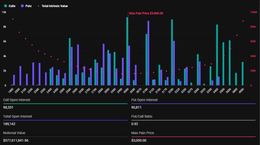 With Bitcoin options valued at $3.4 billion and Ethereum at $581.57 million, traders are bracing for potential volatility.