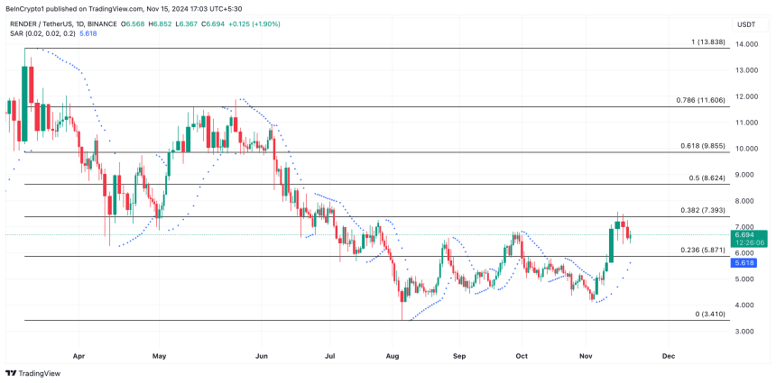 If this trend persists, RENDERs price will likely test resistance at $7.39. A successful breakout could propel the token towards $8.62.