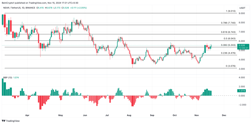 Its Elder-Ray Index confirms that the bulls remain in market control and are attempting to push NEAR‘s price higher. At press time, the indicator’s value stands at 1.07.