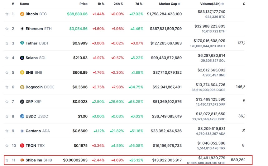 Shiba Inu, a meme-inspired cryptocurrency, recently experienced a bullish surge but faced resistance at a critical level, leading to a bearish correction. With a market capitalization of about $13.75 billion, it ranks as the eleventh-largest cryptocurrency, according to CoinMarketCap. Its daily trading volume has risen sharply to approximately $1.47 billion.