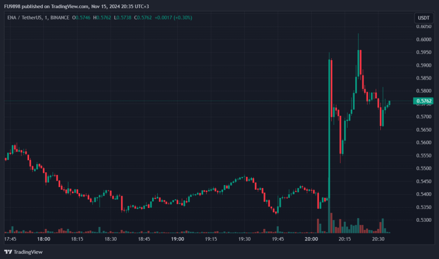 Following the development, ENA saw a significant price increase. According to Binance data, the token saw an 11% increase at its peak.