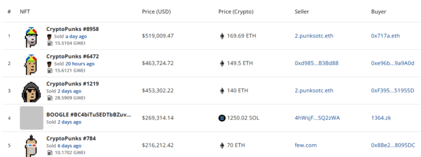Top NFT sales: Data from CryptoSlam