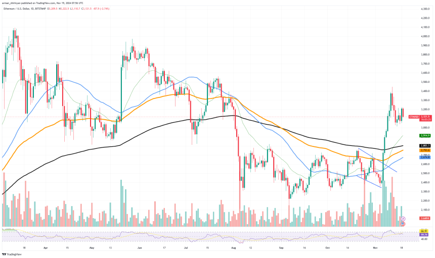 The sharp increase in open interest is indicative of a more positive mood on the market, which may have been influenced by developments unique to Ethereum or better macroeconomic conditions. Ethereum may regain its position as the market leader in terms of performance and innovation if this activity continues. The price chart indicates that after consolidating close to its EMAs, Ethereum recently rose above $3,200.