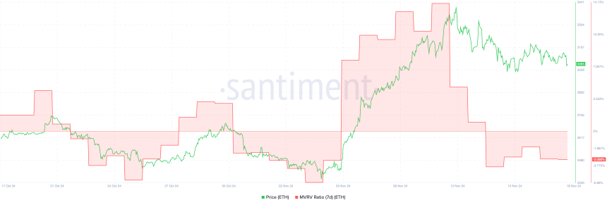Interestingly, on November 5, MVRV 7D ratio hovered around similar levels before a sharp price rally took ETH from $2,400 to $3,400 in just a week, highlighting how this could happen again soon.