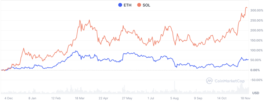 While the price of Bitcoin (BTC) is dramatically updating historic high after high, just as dramatically, the price of Ethereum (ETH), the leading altcoin on the crypto market, is flying in an open peak downward against the major cryptocurrency. Since the beginning of the year, the price of ETH has lost 46.99% to the price of BTC from the high of the year and, as a result, has reached 0.03187 BTC per Ethereum, unseen since March 2021 - that is, for almost four years.