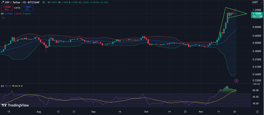 The altcoin surged from $0.55 on Nov. 9 to a peak of $1.26 on Nov. 16. This represented an impressive 129% rally within a week, allowing XRP to finally reclaim the $1-mark for the first time in three years.