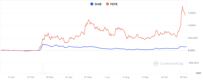 However, PEPE's trading volume right now is $5.37 billion, and SHIB's is $1.44 billion. That is a difference of almost four times. We will leave it to the fans of PEPE and Shiba Inu to judge which of these is greater evidence of size and superiority.