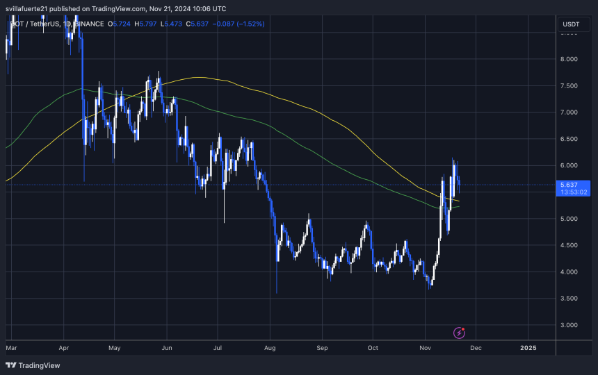WikiBit 2024-11-22 13:01Polkadot (DOT) has entered a consolidation phase, trading below the $6 mark after a strong 30% rally