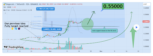 MadWhale highlighted key support levels using Fibonacci retracements to manage these Dogecoin price fluctuations better. The crypto analysts accompanying chart showed the $0.3 level as the main support based on the Fib level. A bounce of this support level could send Dogecoin to the $0.55 target.