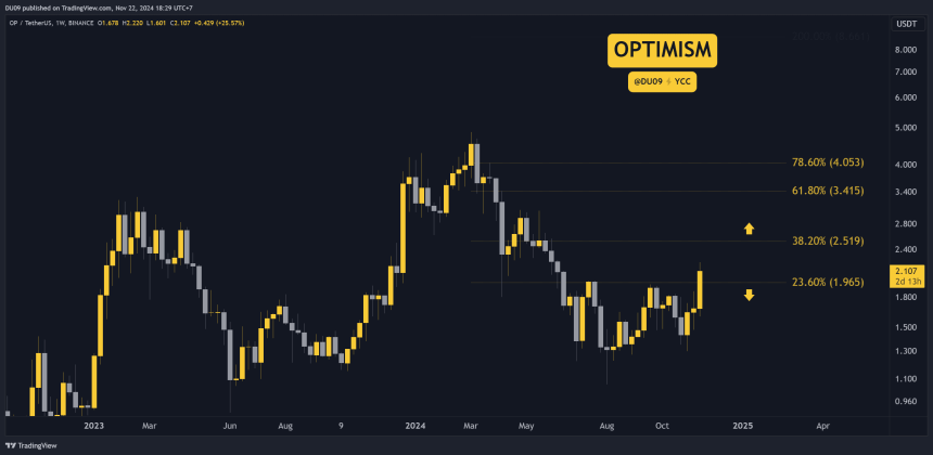 Optimism broke above $2, which was a key resistance, and the price is up by 34% this week. This strong performance is a major signal to the market that OP is ready for higher levels after it just left its long consolidation since June 2024.