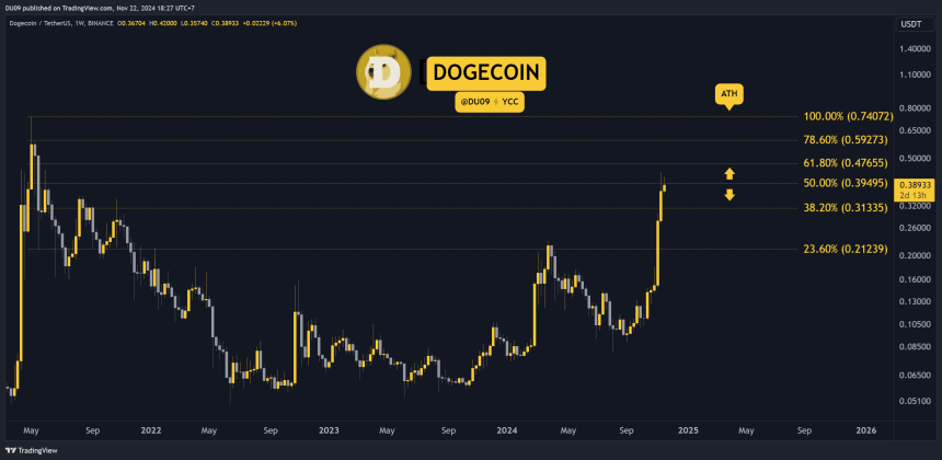 Looking ahead, DOGE could aim to hit its all-time high at 74 cents, which is not so far away considering the price has tripled in November.