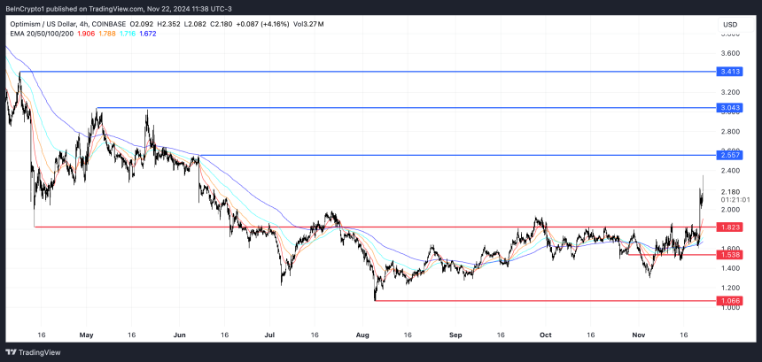 However, if the trend reverses, OP price could face significant downward pressure, with the next supports at $1.82 and $1.53.