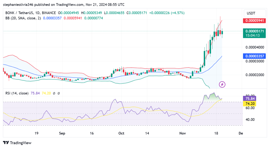 BONKs trading activity signals indicate global adoption gaining acceptance, particularly on Coinbase and Upbit. This constant surge in its trading volume on various crypto exchanges indicates that the demand is on the rise and the BONK price is capable of continuing with this rally.