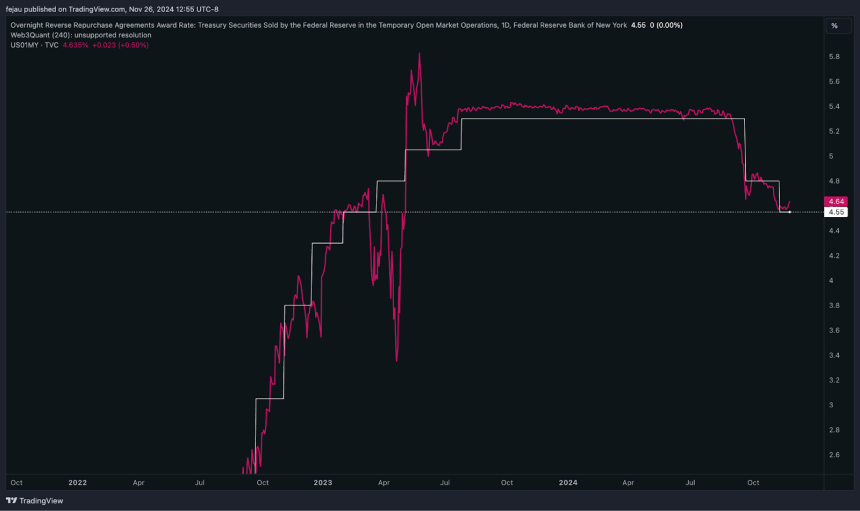 Essentially, the Fed is considering lowering the award rate on Reverse Repo Facility assets by 5-basis points, which would lower the bottom of the target range of the federal funds rate band.