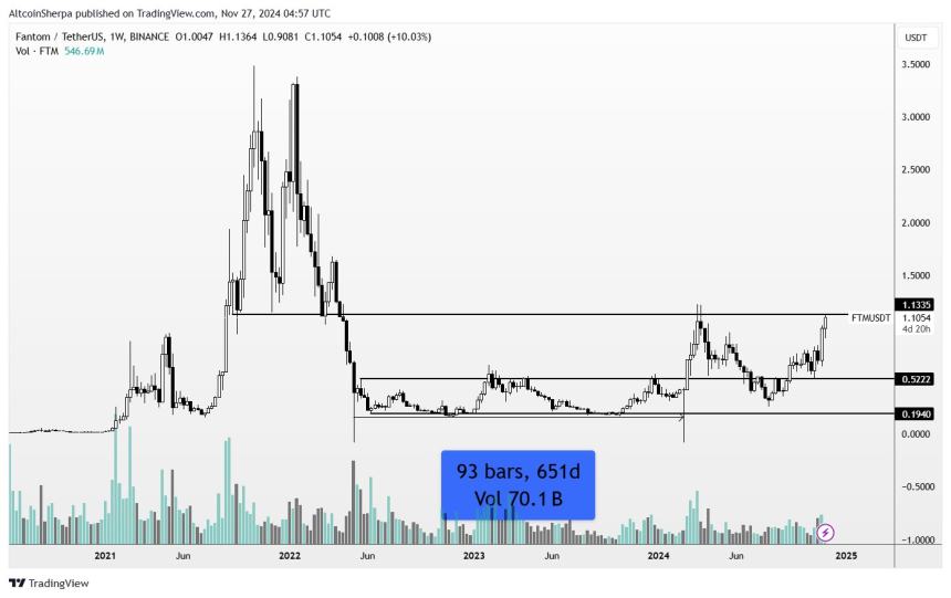 Based on the traders chart, he seems to suggest that FTM is facing one big resistance level at $1.10.