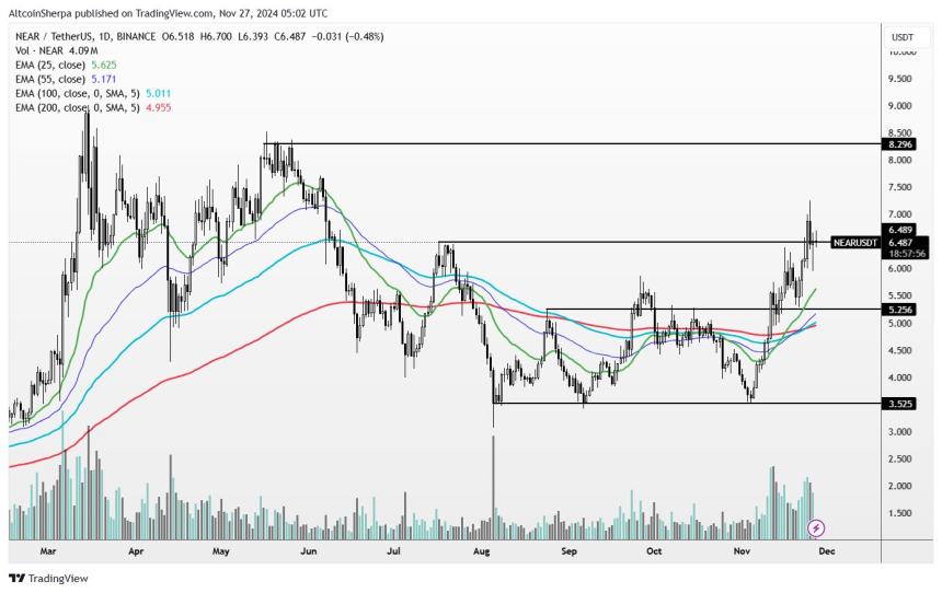 Looking at fellow layer-1 (L1) protocol Near (NEAR), the trader shares a chart suggesting that the altcoin may target its resistance at $8.29 after moving above $6.50.
