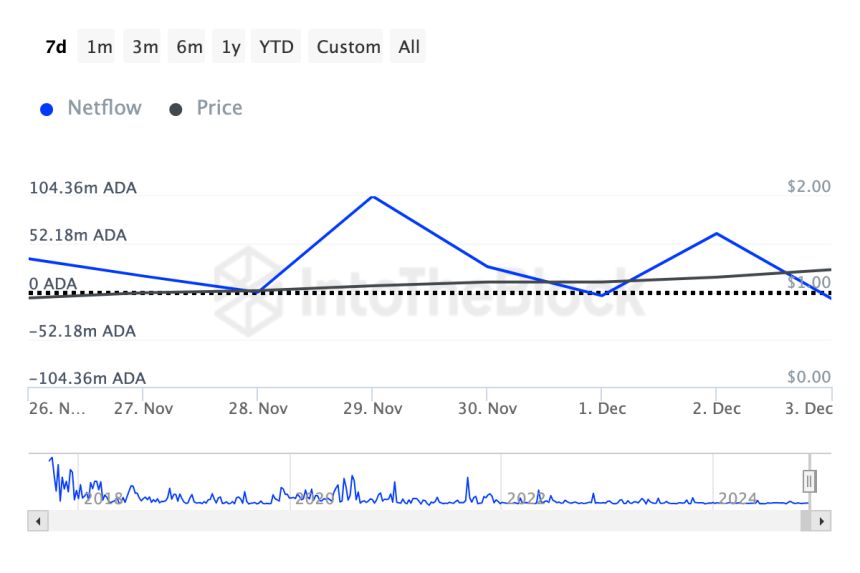 Cardano Large Holders Netflow. Source: IntoTheBlock