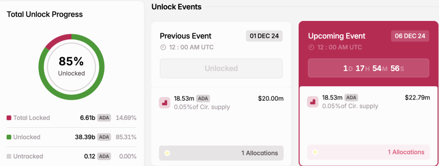 Cardano Token Unlock.Source: Tokenomist
