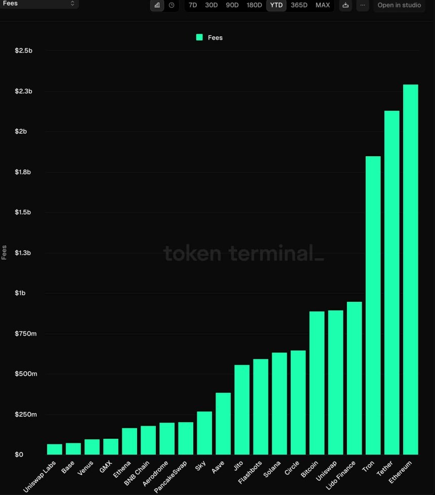 Cryptocurrencies by fees | Source: TokenTerminal