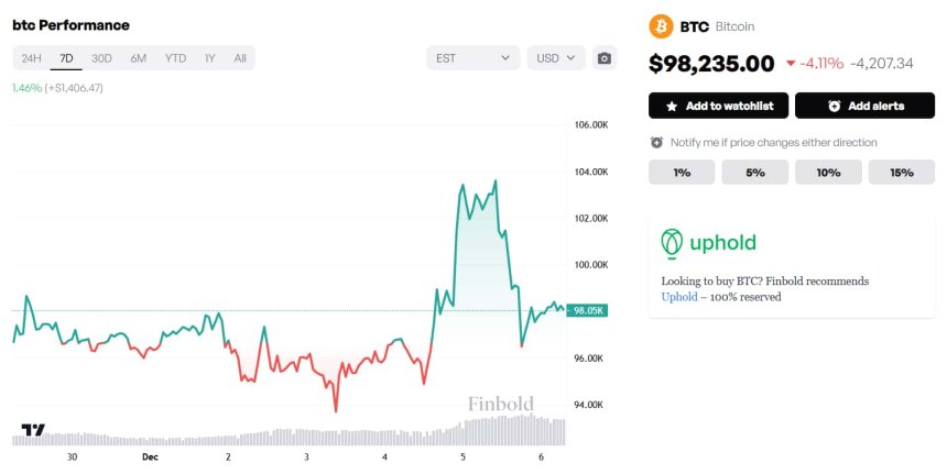 Though the target might appear so lofty that it is out of reach, it is worth pointing out that it would represent a 29.28% rise from the press time price of $98,235 and that the world‘s premier cryptocurrency rocketed 31.96% in the last 30 days. If December 5 highs are taken as an endpoint, Bitcoin’s total 30-day upswing amounted to 48.43%, making 29.28% more plausible.
