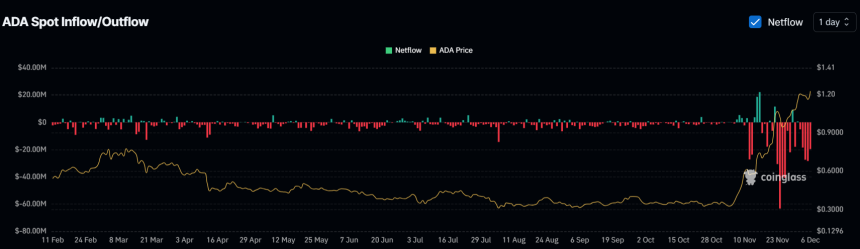 Based on this bullish technical analysis, it appears that investors and whales have shown strong interest in the altcoin, as reported by the on-chain analytics firm Coinglass. Data from ADAs spot inflow/outflow indicates that exchanges have witnessed a significant outflow of $98.37 million worth of ADA.