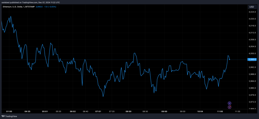At the time of writing, the Ethereum price is trading at around $3,980, up almost 3% in the last 24 hours, according to data from CoinMarketCap.
