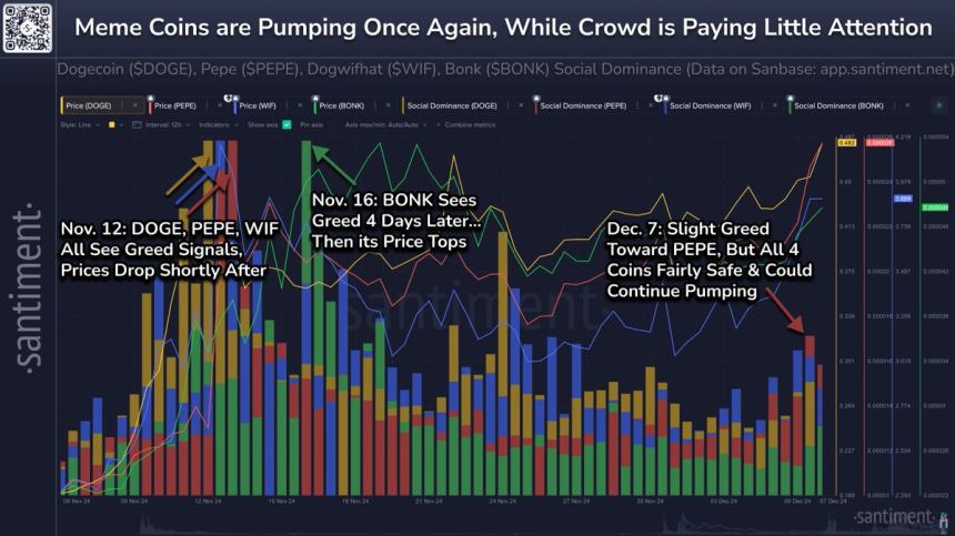 However, the dynamics of meme coin markets suggest caution. Santiments analysis shows that when social dominance for these tokens spikes significantly, it often signals a market top. Whales typically capitalize on heightened retail enthusiasm, offloading their holdings at inflated prices. This pattern frequently results in a sharp retrace as prices correct following the sell-off.